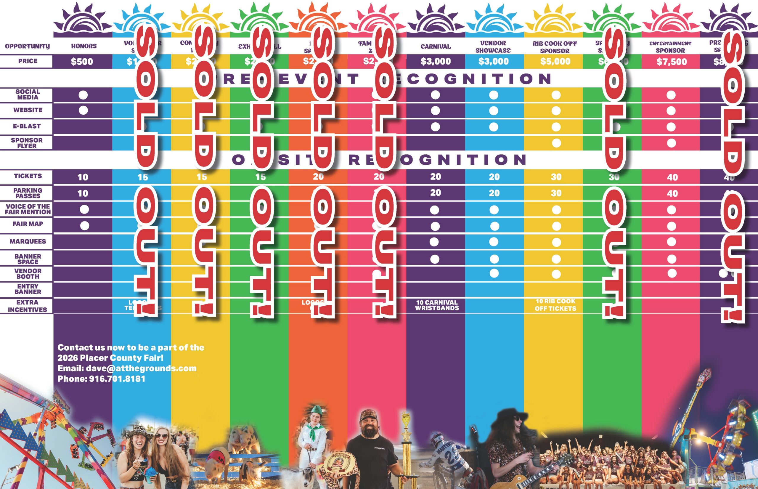 For 87 years, the Placer County Fair has been a beloved tradition where families, neighbors, and businesses come together to celebrate community, youth, and local agriculture. Whether you’re a vendor or a sponsor, your participation is a chance to engage with over 20,000 fairgoers each year. Sponsors and vendors play a key role in supporting local programs and contributing to the fair’s success.
